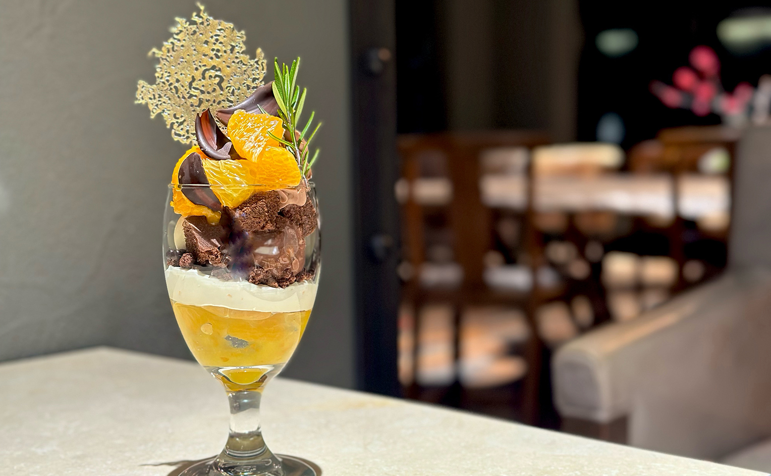 旬の柑橘とショコラのパフェ。