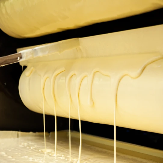 バームクーヘンは芯棒に生地をつけて回しながら焼きます。このときついた焼き目が線のように見えるのです。