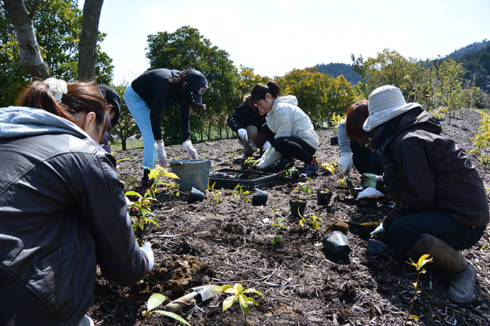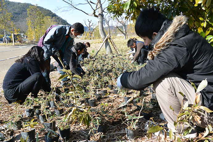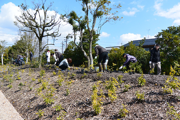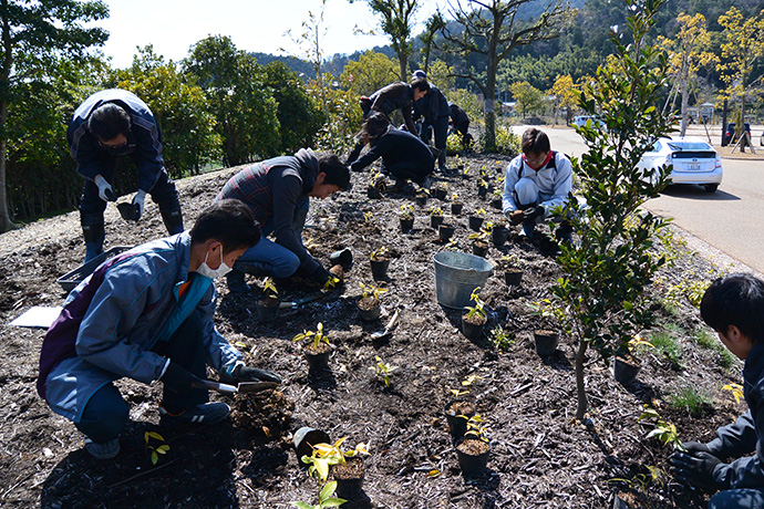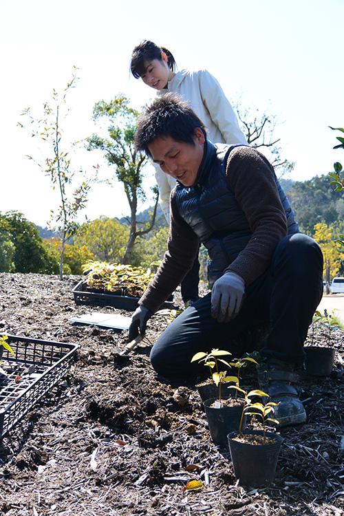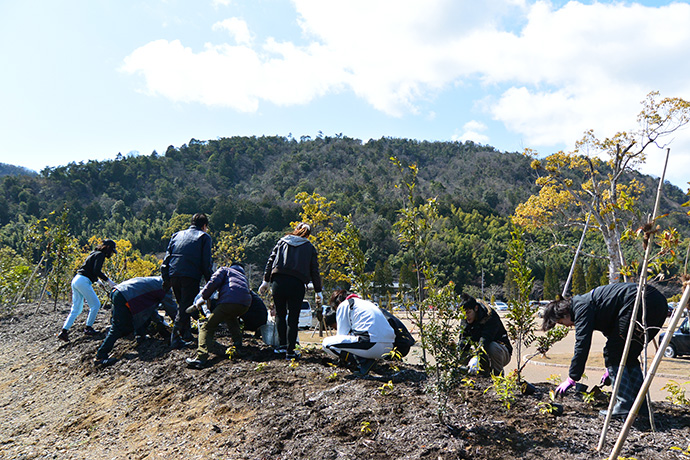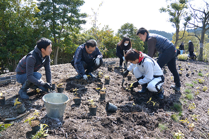 ラ コリーナ近江八幡の森を作るどんぐりプロジェクトも今年で7年目。 たねや農藝 愛四季苑を中心に従業員16名が集まりアラカシとシラカシ870本、こぐま笹312本の苗木を駐車場入口付近に植樹しました。 メインショップがオープンし、お客様が行き交う中での作業は今までとは違う新鮮さを感じるものでした。