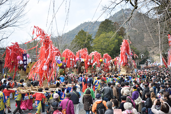 近江八幡の日牟禮八幡宮で行われる「左義長まつり」。