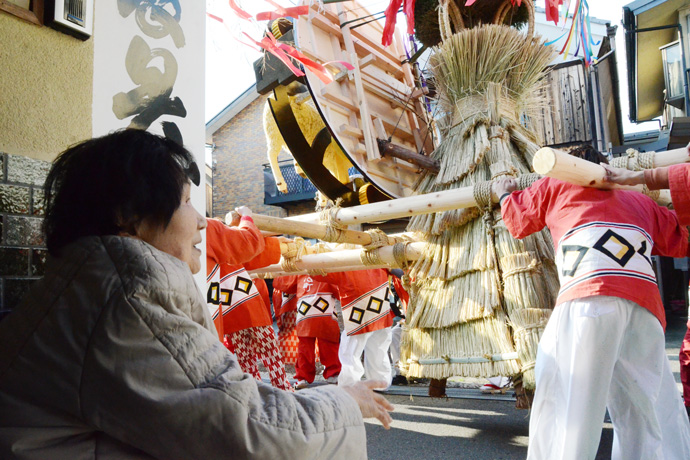 家の前を通る左義長を30年以上楽しみにしているご夫婦、母国にはない祭りの文化に魅せられたアメリカ人の男性にも出会いました。福祉施設では、縁側に椅子を並べた利用者のお年寄りが懐かしそうに歓声を上げていました。