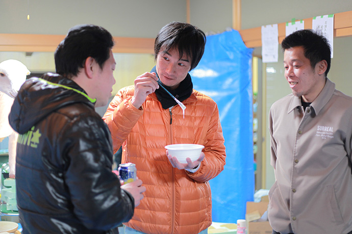 「小さい時から祭りがあるのは当たり前。考えたこともないなぁ」。祭りに熱中する親の姿を見て育ち、大きくなったら左義長をやる。そこに理由はなく、自然の流れ。当たり前に身近にあって、当たり前に続いていくのが左義長まつりでした。「大変やけど、基本はみんなまつりが好きってことやと思う」。会所に集まるみなさんの気持ちは一つでした。