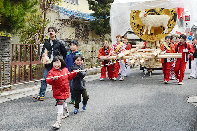 祭りに熱中し、勇ましくダシを担ぎ上げる大人たちは、いつの時代も子どもたちのあこがれ。子どもたちも大人顔負けに、赤紙を見たら血がさわぐようでした。もう立派に左義長まつりを体現していました。