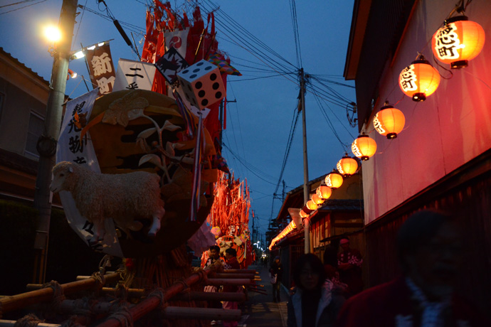 初日は「渡御(とぎょ)」といって、町によっては1トン近くあるダシを30人ほどで担ぎ、練り歩きます。肩や首がはれ上がっても、下駄の鼻緒が切れても、足を進めるのは待っていてくれる人たちがいるからです。