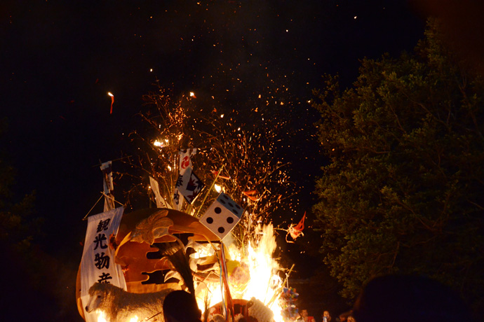 ダシに火を放ち神にささげる奉火は、夜空に火の粉が舞うとても神秘的な儀式のようでした。
