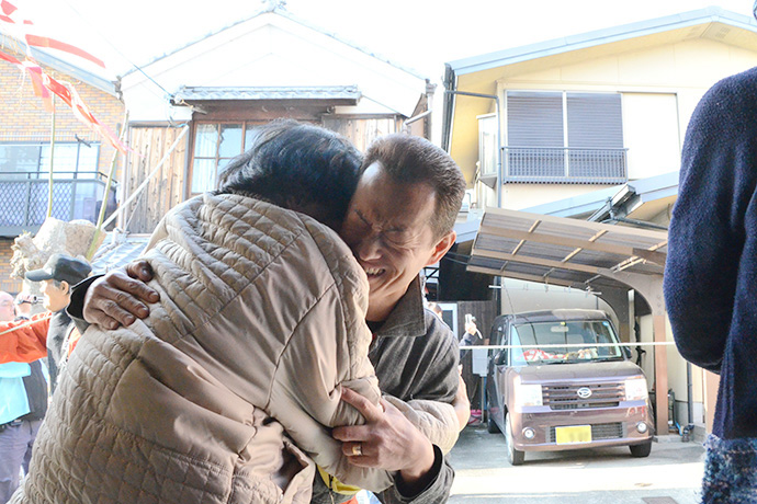 為心町の表具屋立木米さんのところには今年もたくさんの“子どもら”が駆け寄り、手を握ってゆきました。