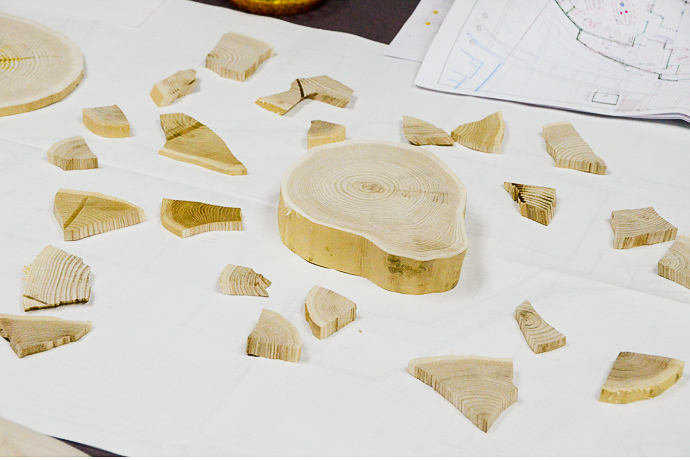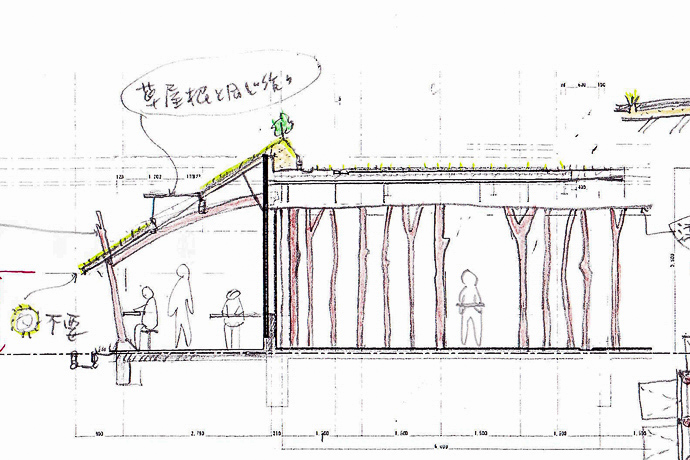 藤森先生は図面を見ながら、一本一本をじっくり見極め、個性的な栗の木を建築に当てはめて行きます。