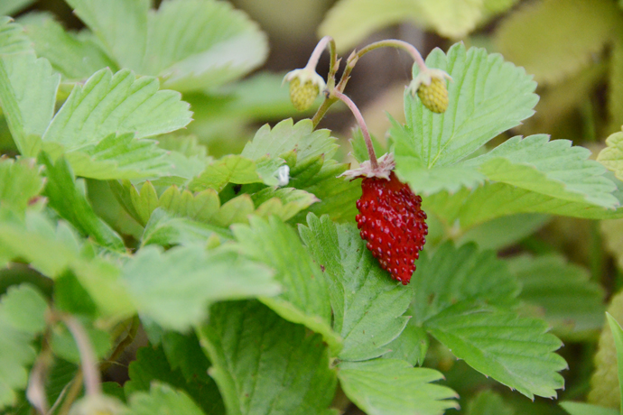 可愛らしい実をつけていたのは、ワイルドストロベリー。