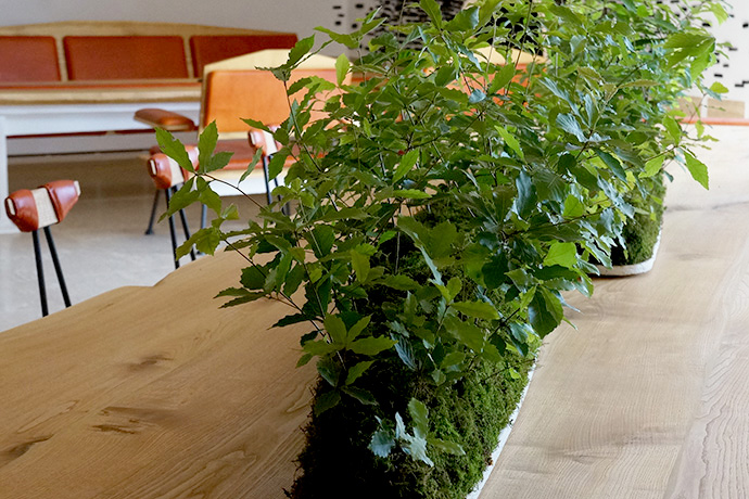メインテーブルには愛四季苑で作成したコケ山の演出も従来スペースより更に広がり、贅沢に落ち着いたひとときをお楽しみいただけます。