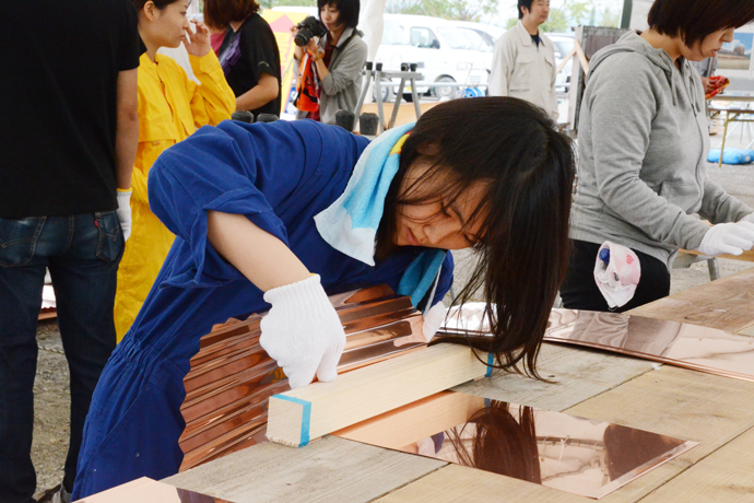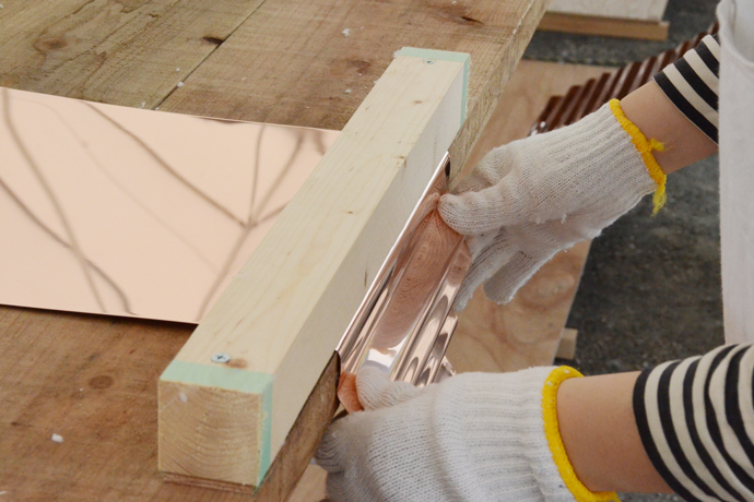 その名の由来となる、まさに「銅の屋根」に使う銅板を曲げる作業をワークショップで行いました。