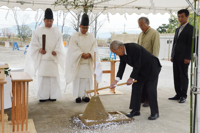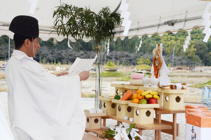 地鎮祭は工事の安全を祈願して、その土地の神さまに土地を利用させてもらうことの許しを得る儀式。