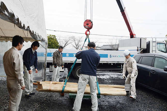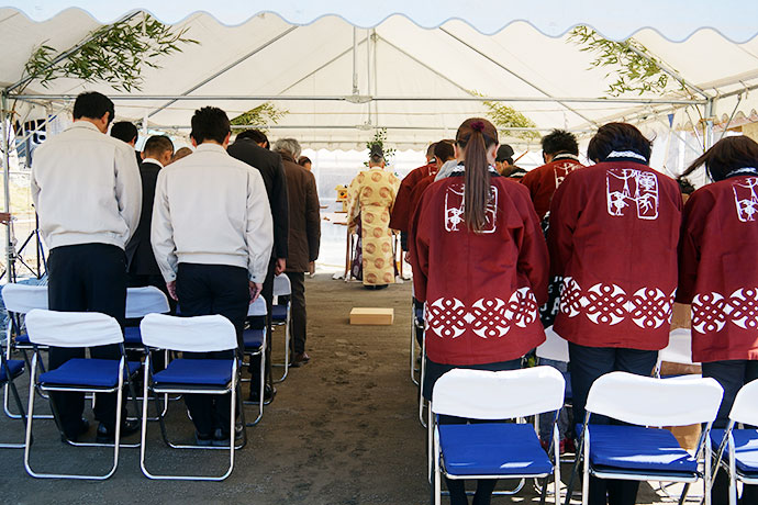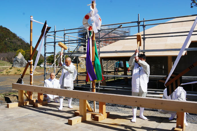 その後ほどなくして、上棟式が執り行われました。まだ冬の寒さが残る快晴の日でした。