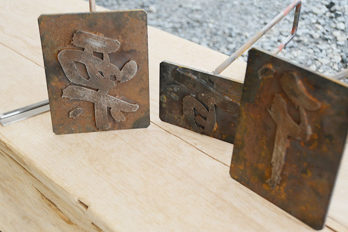 本番は一回きり。失敗は許されないため、社長の練習も念入りに行います。焼きゴテは温度が上がり過ぎても焦げて綺麗に押せないため、熱し具合も細かく確認。あとは思い切って押すのみです。