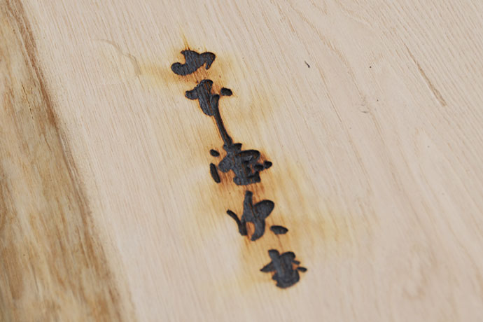 書を形どった焼きゴテを熱し、慎重に焼き入れます。