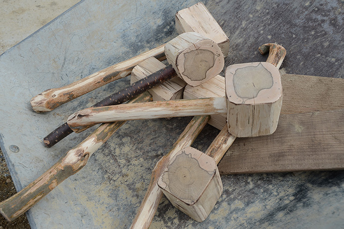 木づちは愛四季苑(はしきえん)のスタッフの手作りです。ひとつひとつ形が違っていて、良い味出てます。