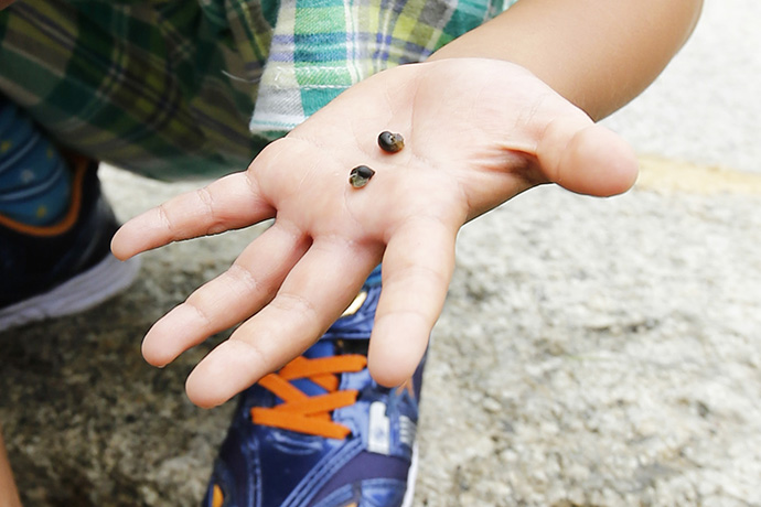 作業途中で見慣れない生き物を発見。何だろう…?ホタルの幼虫かな?と考えを巡らせます。調べてみると、おそらく「ガムシ」の幼虫だろうと。色んな生き物がこのラ コリーナ近江八幡にいるって事だと話に花が咲きます。鳥やカエル、最近ではトンボも飛んでいます。ゆくゆくはホタルが飛んでいる風景も思い描いています。