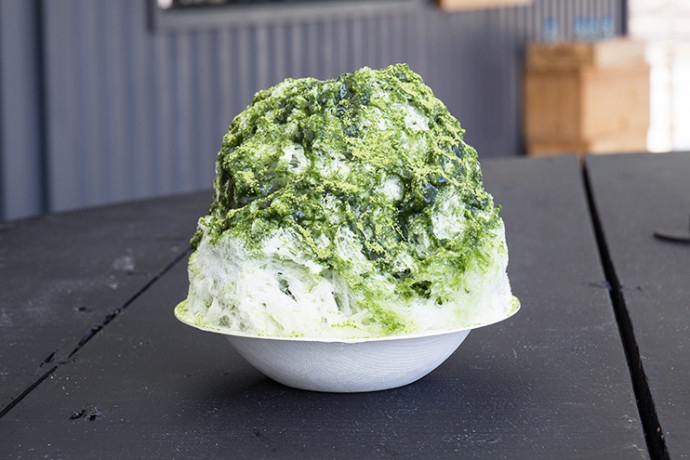 メインショップでも桑の葉を使ったお菓子がありますが、その桑の葉の濃厚なソースと桑の葉パウダーをかけた、ほろ苦さが楽しめる「桑の葉あずき」。抹茶よりも柔らかい風味。