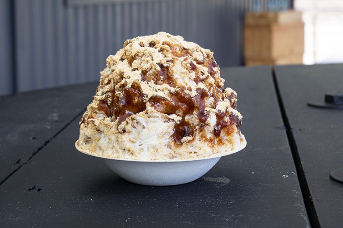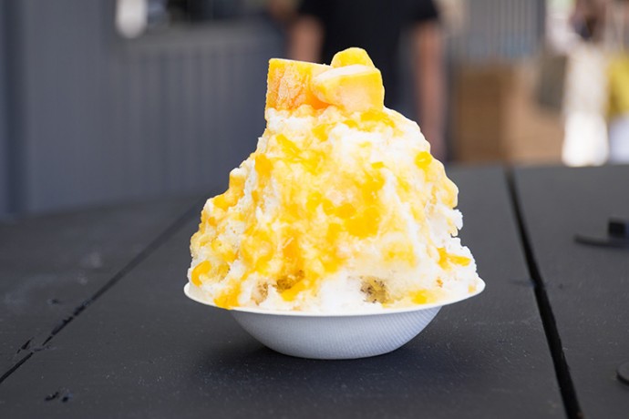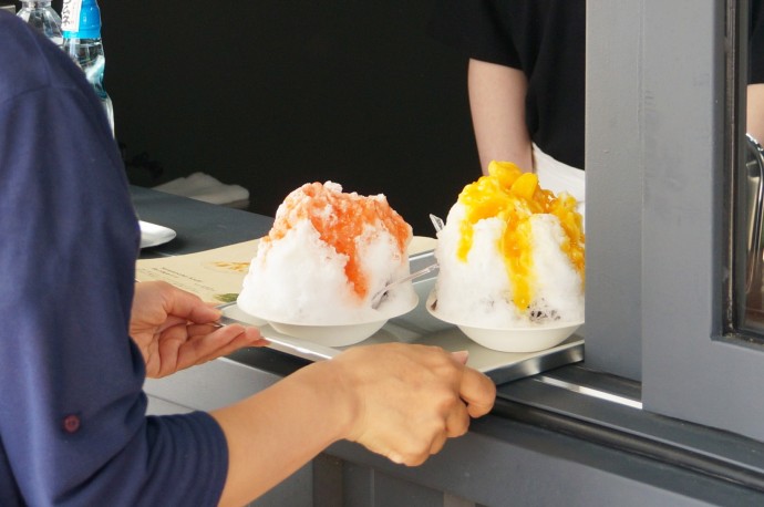 「かき氷」はご注文を受けてから一つずつ職人が目の前で仕上げていきます。ふわふわの氷の中には全てたねや自慢の餡入り。マンゴーと餡は合うの?と思われる方もいらっしゃるかもしれませんが、どのお味にも相性ばっちり。器いっぱいの氷は食べ応えも十分です。4種それぞれの“おいしさ”をぜひ味わっていただければと思います。