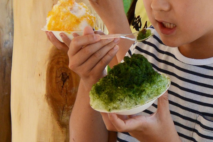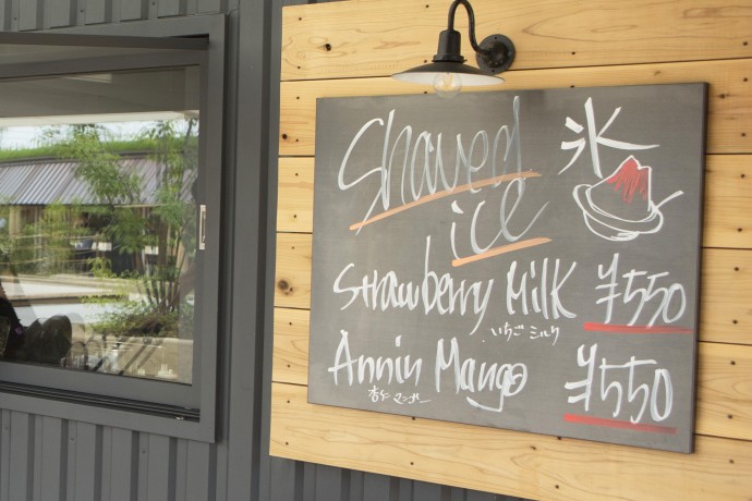 季節は確実に秋へ近づいているようで、コンテナショップ前の田んぼの稲穂も日に日に重くなり、9月4日には従業員が参加しての稲刈りの予定です。とは言っても、まだまだ残暑厳しい日が続いている毎日。そんな暑い日にぴったりの“おいしさ”の「かき氷」。コンテナショップCHAYAでは4種類の味わいをご用意しています。【Shaved ice】の看板が目印。