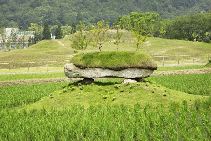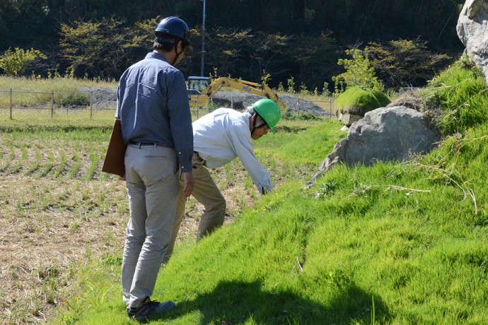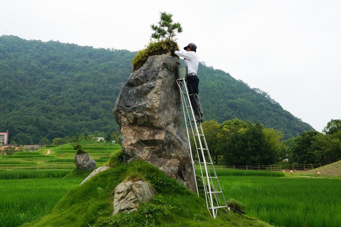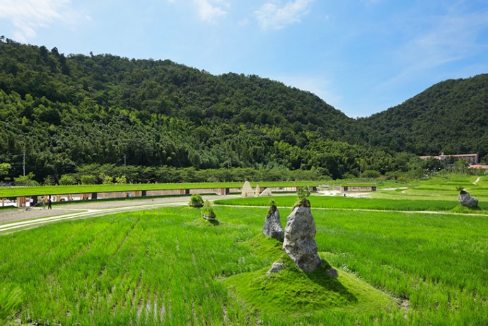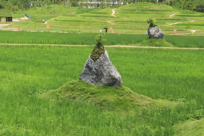 また、「舟石」のように稲が稔った時に石が浮いている様に見せるなど、この自然に溶け込むように工夫しました。