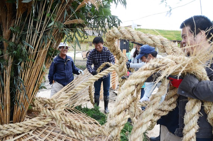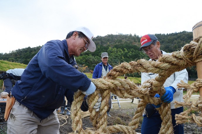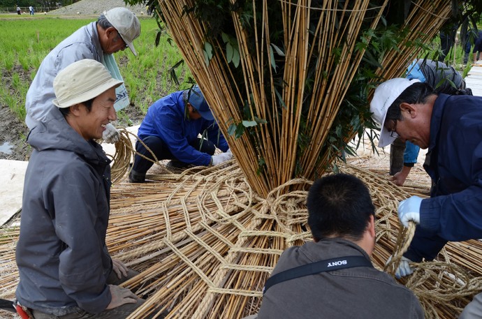同じ町に生まれ、毎年毎年お祭りの度に集まって松明づくりを一緒にされているみなさん。さすが!というような阿吽の呼吸でにぎやかに作業が進んでいきました。