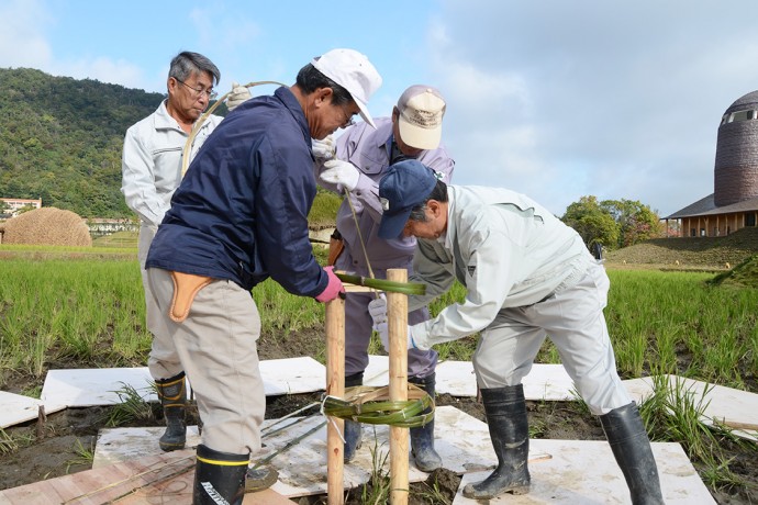 準備が着々と進んでいます。昨日はフェス開催に先駆けて、滋賀県近江八幡市千僧供(せんぞく)町の大松明づくりが行われました。このフェスは地元のみなさんのご協力あってこそ!たくさんの地域の方々と共につくり上げます。