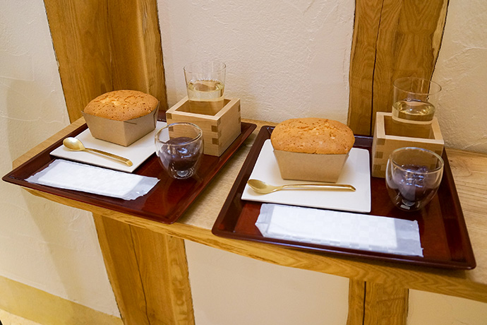 今年7月にオープンしたカステラショップでは、希少な地酒「権座(ごんざ)」と2種のカステラを選べるセットが登場。一見意外な組み合わせですが、地元近江八幡のお米でつくられた銘酒の深い味わいと程よい甘さのカステラは相性抜群。この期間だけの大人の楽しみ方をぜひお試しください!