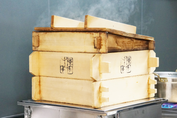 コンテナショップでは蒸したての3種のおこわ(豆・栗・赤飯)がおすすめ。季節の素材をつかっていますので、秋を感じてみてください!