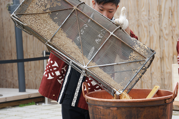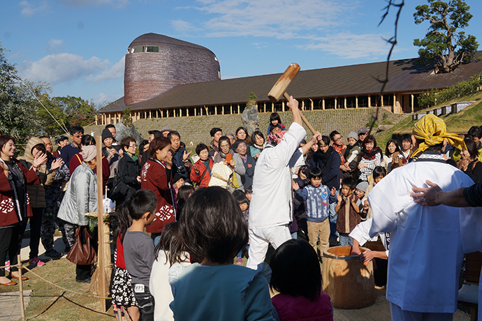 振る舞い餅は、「よいしょー!よいしょー!」の声で盛り上がりました。