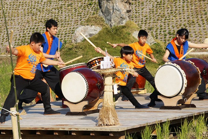 特設ステージでは、地元の子どもたちによる日牟禮太鼓の演奏。小学生から高校生の子どもたちまでが参加し、より力強く迫力ある和太鼓の演奏にたくさんの拍手。パフォーマンス中の子どもたちの真剣な顔が凛々しく印象的。「格好良いね」や「叩いてみたい!」との声も聞こえました。