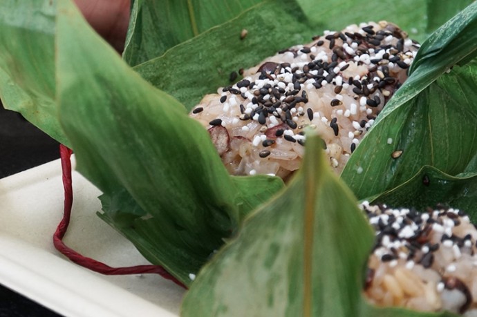 フェス期間中の限定商品、近江八幡の地酒「権座(ごんざ)」とたねや自慢のカステラのセットや3種のおこわも人気。一番人気はほくほくの栗入りおこわでしたが、古代米入りの赤飯と3種の豆のおこわも好評でした。