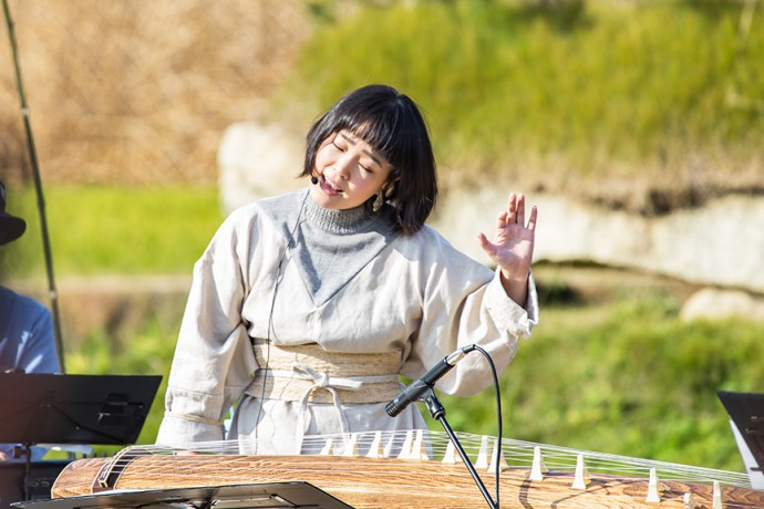 11月4日には滋賀出身のシンガーソングライター真依子さんのLIVE。琴の音色と透き通る歌声がラ コリーナに広がり、とても幻想的な雰囲気に。