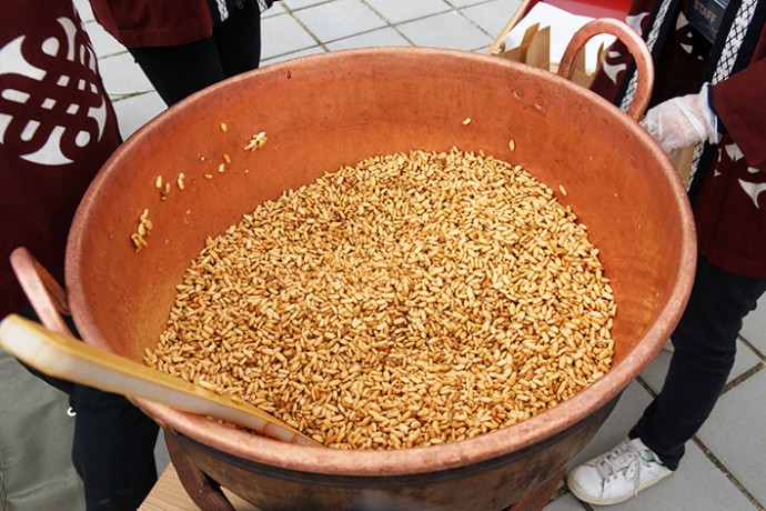 「ポン菓子」は出来上がりの音を聞いて、びっくりされた方も多くいらしたと思います。素朴なポン菓子は、ほんのり甘い黒糖味で子どもたちにも人気。中には袋を抱えて、夢中になってパクパク食べている子もいました。