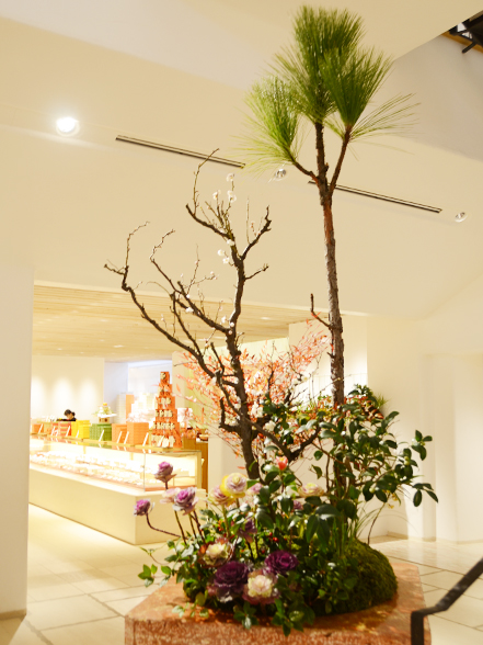 店内に飾られている華やかな山野草は、たねや農藝 愛四季苑(はしきえん)のスタッフが寄せ植えたもの。