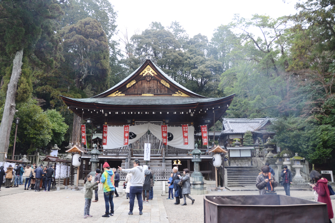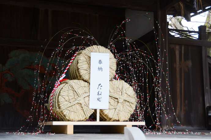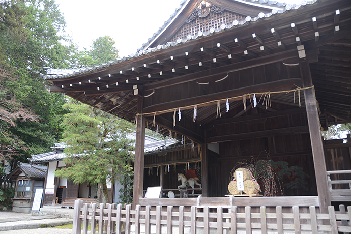 初詣でにぎわう境内右手の能舞台でご覧いただけます。