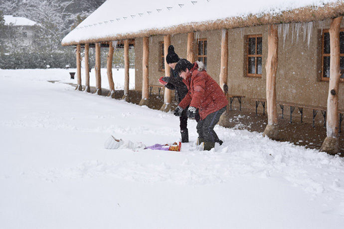ふわふわとした雪に思わずぱたっと寝ころぶ様子も見かけました。