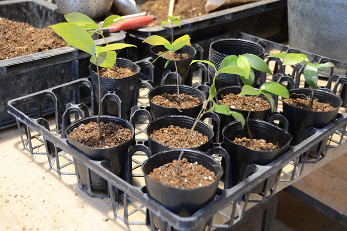 抜いた苗木はポットに移し、しばらくの間育ててからまた地に返します。