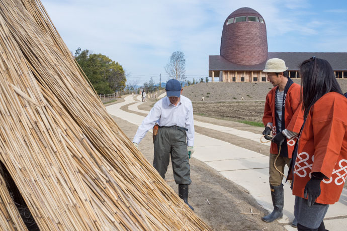 『La collina』8号でご紹介させていただいたヨシ葺き職人の竹田勝博さんに指導を受けます。