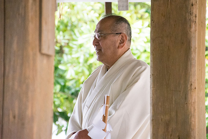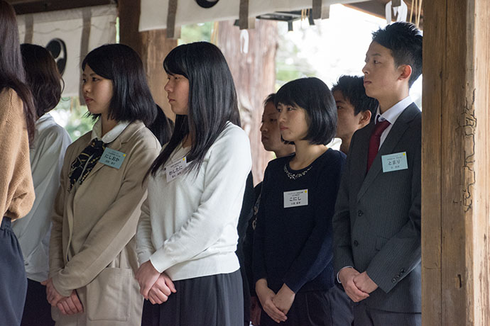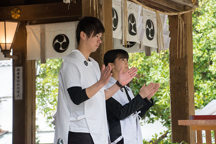 祝詞を奏上する間も少し緊張気味の新入社員たち。