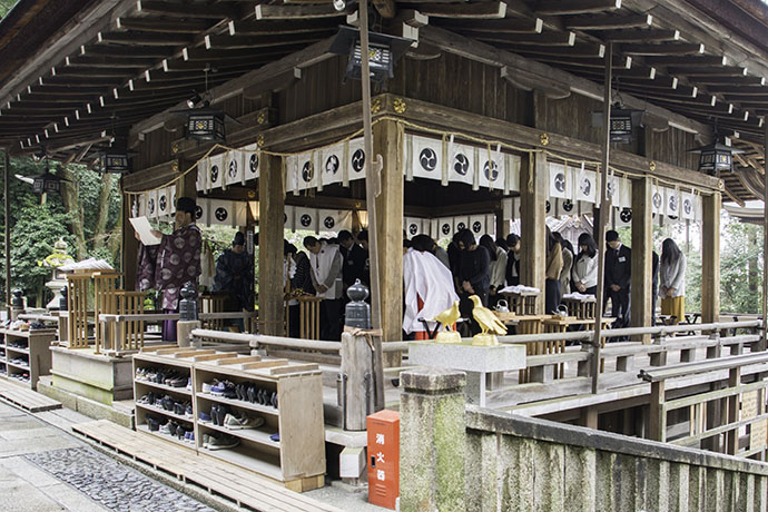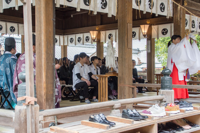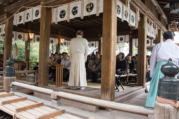 祈祷の終わりに日牟禮八幡宮の宮司よりお言葉をいただき、御神酒を受けて日牟禮八幡宮をあとにしました。