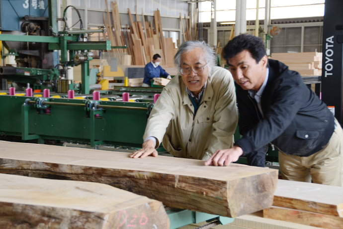 2016年5月、岐阜県揖斐川(いびかわ)町の末永製作所を訪れました。ここには、1年前に先生ご自身が山に入って選んできた栗の木が保管されています。※その時の日誌はこちら。