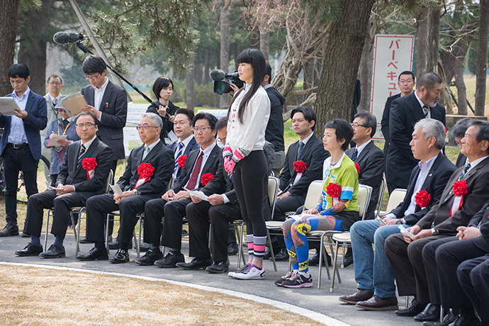 4月6日、記念碑の除幕式と女性限定の記念ライドイベントが守山市主催で開催されました。