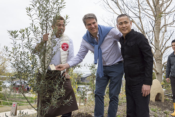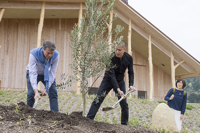 そして今回の来日を記念し、本社入口のアプローチにオリーブの木を植樹することになりました。