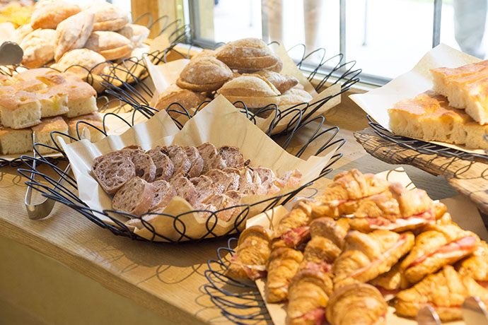 カステラショップのカフェを貸し切った会場ではシェフや菓子職人によるオリーブオイルやバルサミコを使ったお菓子のほか、この日のためにイタリアから輸入したCMV社のワインに合うお菓子も用意されました。