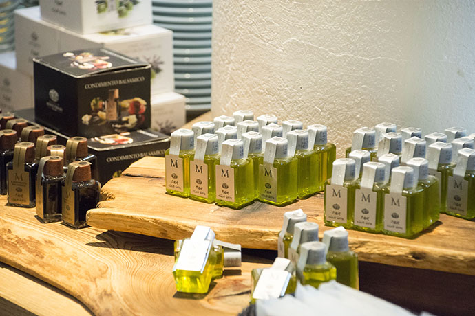 ロレンツォ氏の農場では電気自動車を使うなど環境にこだわり、良質の素材を使った商品はどれも素晴らしいもの。CMV社の商品は「オリーブ大福」をはじめ、たねや・クラブハリエのお菓子に使われています。