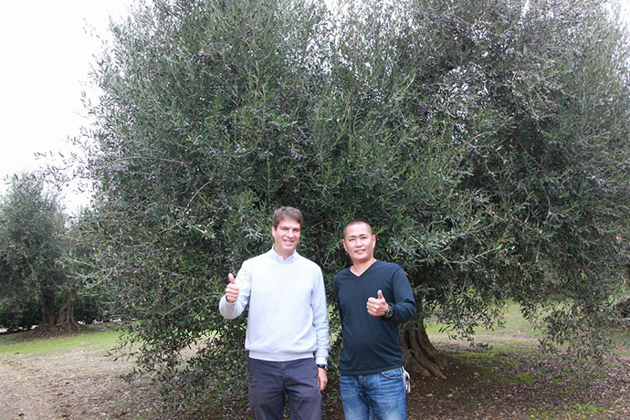 2013年、たねやグループのスタッフがオリーブの収穫体験をしにイタリアのCMV社を訪れた際、ロレンツォ氏から友情の証にとイタリアの農場にオリーブの木をいただいていました。