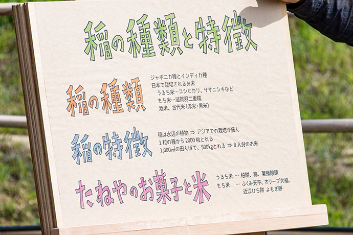 まずは、稲そのものと稲の育て方の勉強です。大人の方を対象に内容を考えたこともあり、子ども達には少し難しかったようで、時折うなずきながらも作業のとりかかりを待てずにそわそわする様子も見られました。