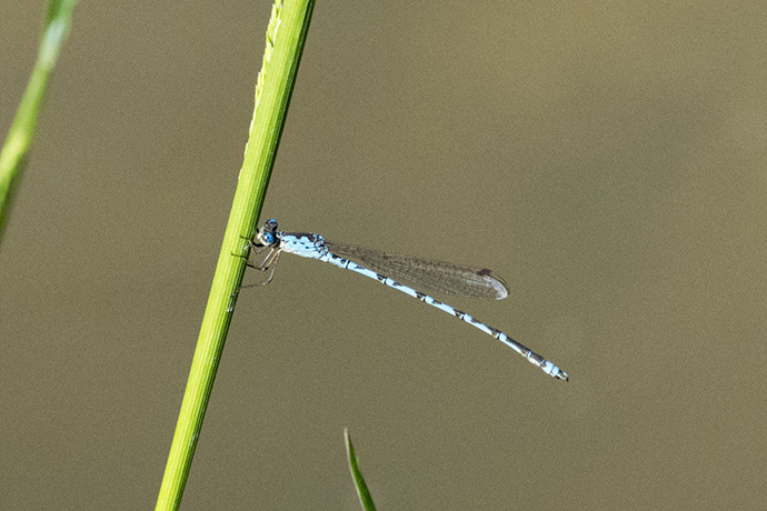 同じ青でもこちらは鮮やかな青色をしたイトトンボ。シオカラトンボと比べると細長くてシュッとしています。