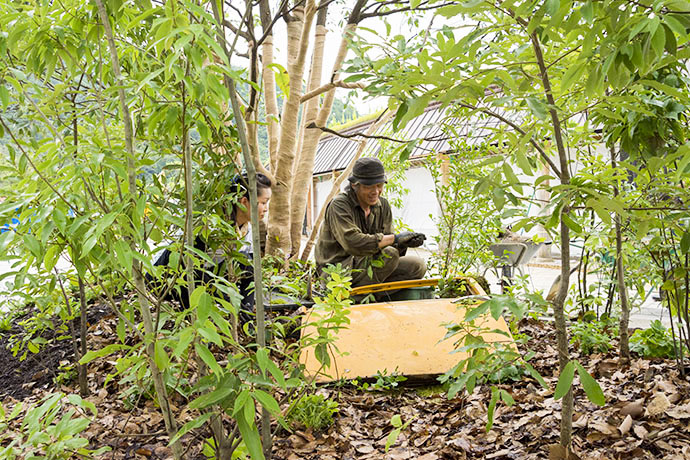クラブハリエ社長の山本隆夫が「ラ コリーナ近江八幡はとてもいい景色なのでロンドンバスの2階から景色を眺めながらゆったり過ごしてもらえたらいいな」という思いから始まったものですが、どんどん夢が膨らみ、新たな試みとして今までにない店舗が誕生することに‥‥