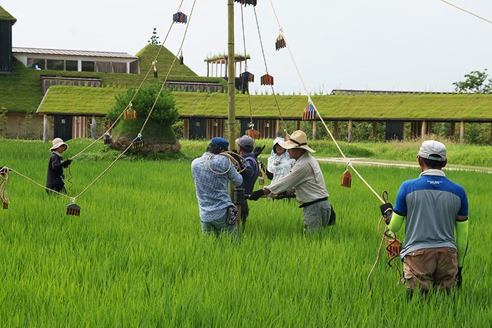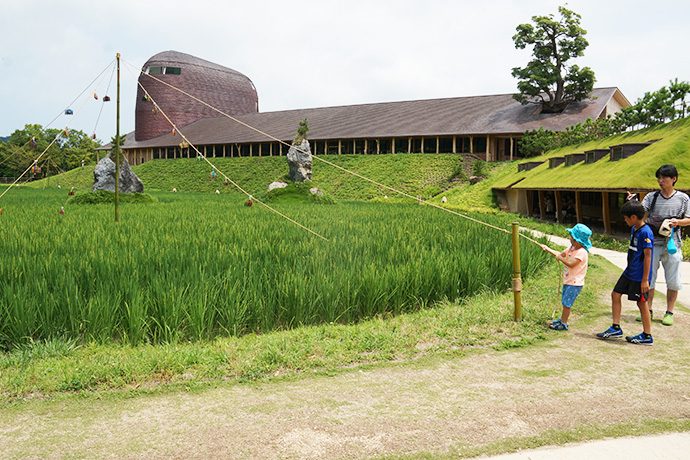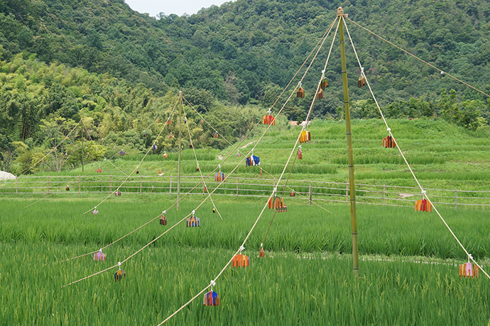 これから9月中旬の刈り入れまで稲を見守るのが鳴子の役目。ラ コリーナへお越しの際は“鳴子プロジェクト”作品をぜひご覧ください。